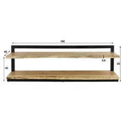 TV-meubel Tom heeft een stoer en natuurlijk uiterlijk. De combinatie met het massieve blad van acaciahout en het metalen frame zorgt dat Tom ideaal past binnen een industriële sfeer. Het metalen frame is afgewerkt in zwart poedercoat. Voor een extra robuuste afwerking is het frame niet helemaal egaal gespoten maar voorzien van diverse schuurplekken. Alle bladen zijn van acaciahout en handgemaakt. Dit zorgt ervoor dat ieder blad uniek is. Kijk ook eens naar de andere onderdelen van de Tom-serie van het woonmerk Fraaai voor eenheid in het interieur. Dit TV-meubel is voorzien van twee planken. Voldoende ruimte om, naast de TV, nog andere spullen op te bergen. Het meubel heeft een afmeting van 180x30x55 cm.