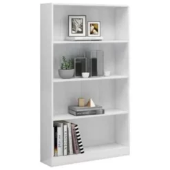 De kast is gemaakt van bewerkt hout waardoor hij stevig en duurzaam is. De boekenkast heeft 4 ruime vakken en biedt voldoende ruimte om tijdschriften, boeken, dvd’s, multimedia-apparaten en decoratieve spullen goed georganiseerd en binnen handbereik te houden. Bovendien is dit meubel zeer veelzijdig omdat het ook een perfecte opbergoplossing is voor in je hal of andere woonruimte.