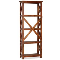 De staande kast is gemaakt van massief acaciahout en heeft een honingkleurige afwerking waardoor hij zeer duurzaam en stabiel is. Acaciahout is een hardhout met prachtige nerven dat vele jaren meegaat. Rozenhout, ofwel palissander, is vergelijkbaar met acaciahout en staat bekend om zijn prachtige nerf. De 4 grote schappen bieden voldoende ruimte om je boeken, documenten, dvd’s en andere spullen netjes geordend te houden. De kast straalt een klassieke charme uit die bij elke interieurstijl past. De montage is eenvoudig.