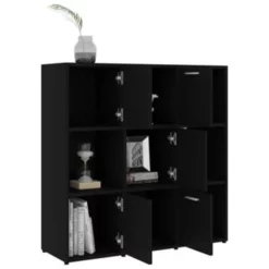 De kast is gemaakt van hoogwaardig spaanplaat, waardoor hij stevig en duurzaam is. De boekenplank heeft 9 vakken, waarvan 5 met deur, die voldoende opbergruimte bieden om je tijdschriften, boeken, dvd’s, multimedia-apparaten en andere decoratieve spullen goed georganiseerd en binnen handbereik te houden. Het boekenrek is eenvoudig schoon te maken met een vochtige doek.