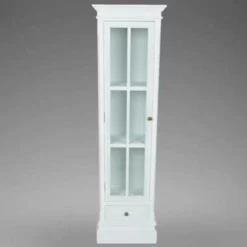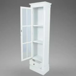 Deze hoge kast heeft 3 planken en 1 lade. Hij heeft een glazen deur voor de schappen om vuil en stof weg te houden. Het is een handige organizer voor op kantoor, in de woonkamer, de slaapkamer of andere kamer in het huis.