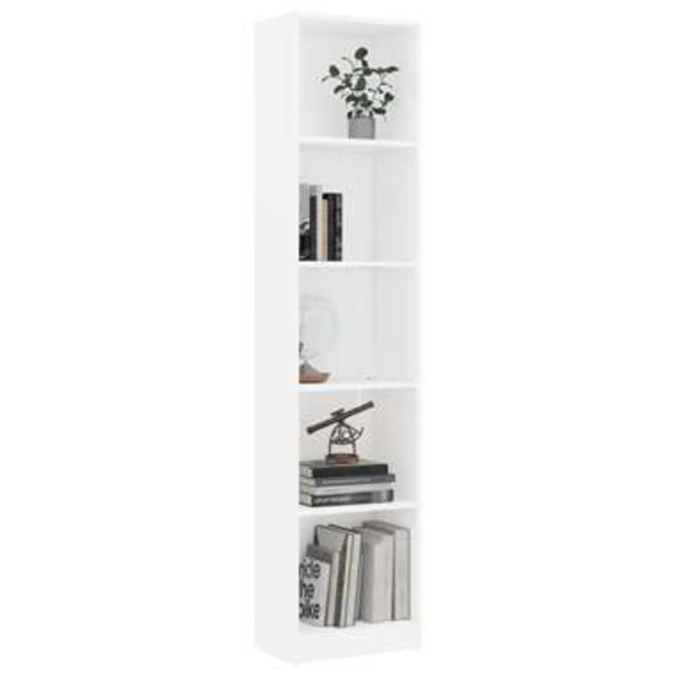 De kast is gemaakt van bewerkt hout waardoor hij stevig en duurzaam is. De boekenkast heeft 5 ruime vakken en biedt voldoende ruimte om tijdschriften, boeken, dvd’s, multimedia-apparaten en decoratieve spullen goed georganiseerd en binnen handbereik te houden. Bovendien is dit meubel zeer veelzijdig omdat het ook een perfecte opbergoplossing is voor in je hal of andere woonruimte.