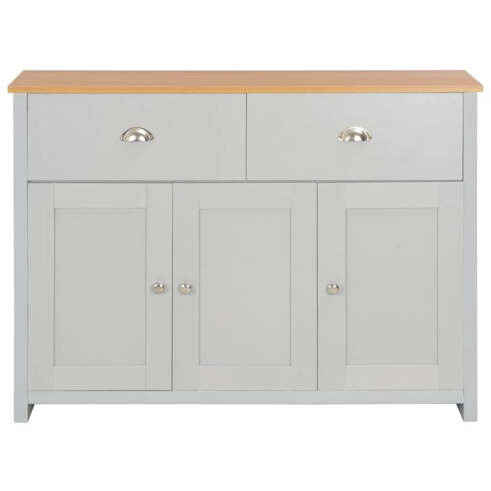 Het dressoir is gemaakt van spaanplaat en melamine, en is zeer stabiel en duurzaam. Het stevige blad is ideaal voor het plaatsen van decoratieve voorwerpen, zoals vazen en potplanten. Het meubel heeft 2 lades en 3 deuren en biedt voldoende opbergruimte om verschillende spullen netjes geordend te houden. Het kan ook in de hal geplaatst worden als wandkast.