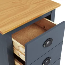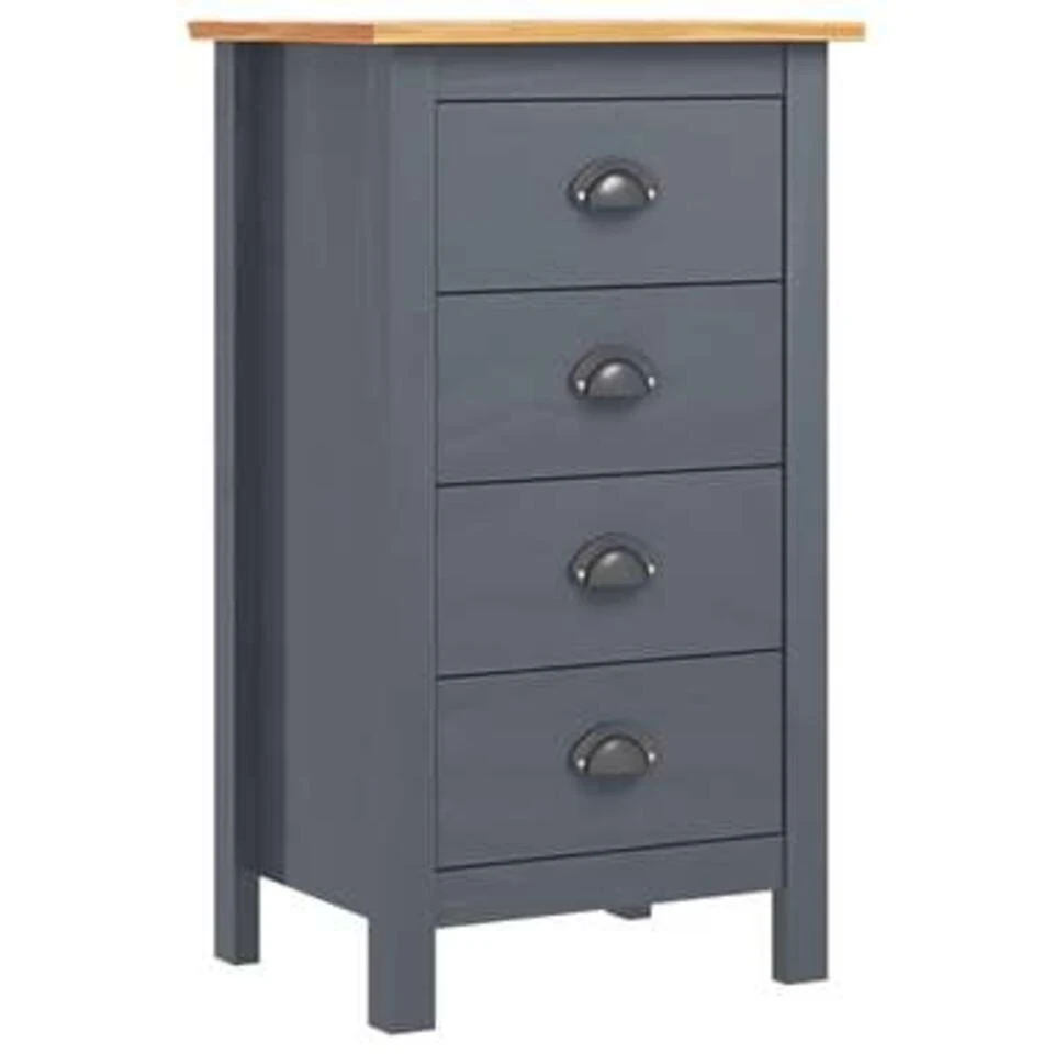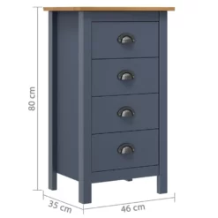 De compacte kast heeft 4 soepel lopende lades, waardoor er voldoende ruimte is om kleinere spullen georganiseerd en binnen handbereik te houden. Bovendien kan het rechthoekige blad worden gebruikt om een fruitmand of decoratieve objecten, zoals fotolijsten of potplanten, op te plaatsen. Het opbergmeubel is eenvoudig te monteren.