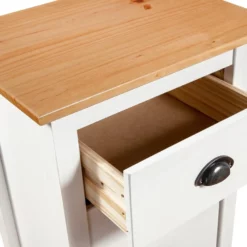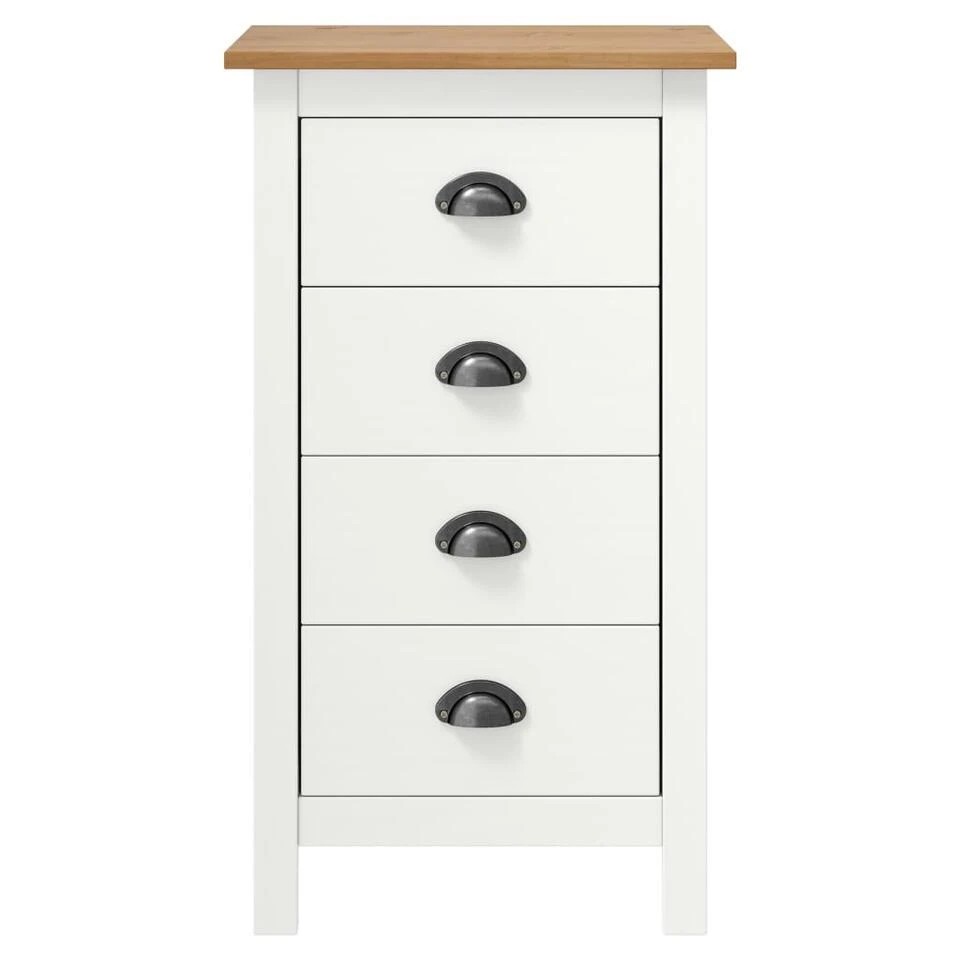 De compacte kast heeft 4 soepel lopende lades, waardoor er voldoende ruimte is om kleinere spullen georganiseerd en binnen handbereik te houden. Bovendien kan het rechthoekige blad worden gebruikt om een fruitmand of decoratieve objecten, zoals fotolijsten of potplanten, op te plaatsen. Het opbergmeubel is eenvoudig te monteren.