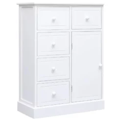 Deze set is gemaakt van hoogwaardig paulowniahout, populierenhout en MDF-plaat waardoor hij buitengewoon stevig en duurzaam is. Hij bestaat uit 10 lades en 2 kasten om voldoende opbergruimte te bieden aan verschillende spullen, zoals sleutels, notitieblokken, boeken, tijdschriften en andere snuisterijen en benodigdheden. Bovendien is de grote bovenkant ideaal voor het plaatsen van een multimedia-apparaat of voor het plaatsen van decoratieve objecten. Je kunt de 2 dressoirs samenvoegen tot een groot geheel of scheiden en als twee individuele kasten gebruiken.