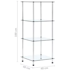 De vitrinekast is ontworpen met vier lagen voor voldoende opbergruimte. Je kunt het multifunctionele kastje in de woonkamer of op kantoor gebruiken om je verzamelobjecten, fotolijsten, potplanten te tonen, of in de badkamer om je benodigdheden georganiseerd te houden. Het is gemaakt van dik, gehard glas en robuust, duurzaam roestvrij staal. Dit meubel is buitengewoon stevig en veilig. Bovendien is het gladde oppervlak eenvoudig te reinigen met een vochtige doek. Het is eenvoudig te monteren.