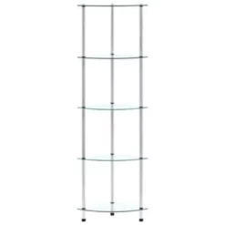 De vitrinekast is ontworpen met vijf lagen voor voldoende opbergruimte. Je kunt het multifunctionele kastje in de woonkamer of op kantoor gebruiken om je verzamelobjecten, fotolijsten, potplanten te tonen, of in de badkamer om je benodigdheden georganiseerd te houden. Het is gemaakt van dik, gehard glas en robuust, duurzaam roestvrij staal. Dit meubel is buitengewoon stevig en veilig. Bovendien is het gladde oppervlak eenvoudig te reinigen met een vochtige doek. Het is eenvoudig te monteren.