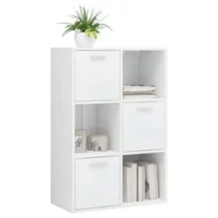 Deze kast is gemaakt van hoogwaardig spaanplaat waardoor hij zeer duurzaam en stabiel is. Hij heeft 6 vakken waardoor je je spullen stofvrij kunt opbergen. De 3 open kubussen en 3 kubussen met deuren hebben voldoende ruimte voor diverse alledaagse voorwerpen, zoals boeken, schilderijen, planten en decoraties. Met dit meubel creëer je orde en overzicht in je woonkamer, studeerkamer, slaapkamer of andere ruimte. Onze kast is eenvoudig te monteren. De levering bevat tevens een schroevenset en montagehandleiding.
