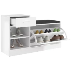 De schoenenopberger is gemaakt van spaanplaat, waardoor hij een verfijnde uitstraling heeft en stabiel en duurzaam is. Dankzij de kunstleren zitting is hij gemakkelijk schoon te maken en kan je comfortabel zitten tijdens het aan- of uittrekken van je schoenen. Dit opslagbankje biedt veel bergruimte en is perfect voor in hallen, gangen en andere woonruimtes.