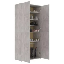 Deze halkast is gemaakt van sterk spaanplaat en is buitengewoon duurzaam en stevig. De schoenenkast heeft 6 schappen, die voldoende ruimte bieden om je schoenen goed geordend te houden. Dankzij de 2 deuren beschermt de kast je schoenen tegen stof en houdt hij ze uit het zicht.