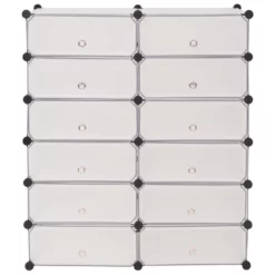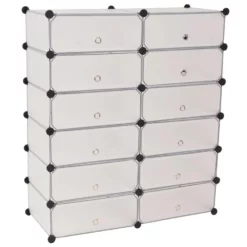 Deze stijlvolle en functionele schoenenkast heeft 12 vakken, ieder met een deurtje, en houdt al je schoenen schoon en georganiseerd.