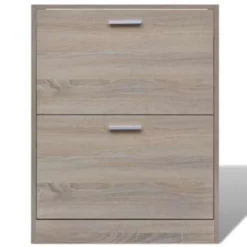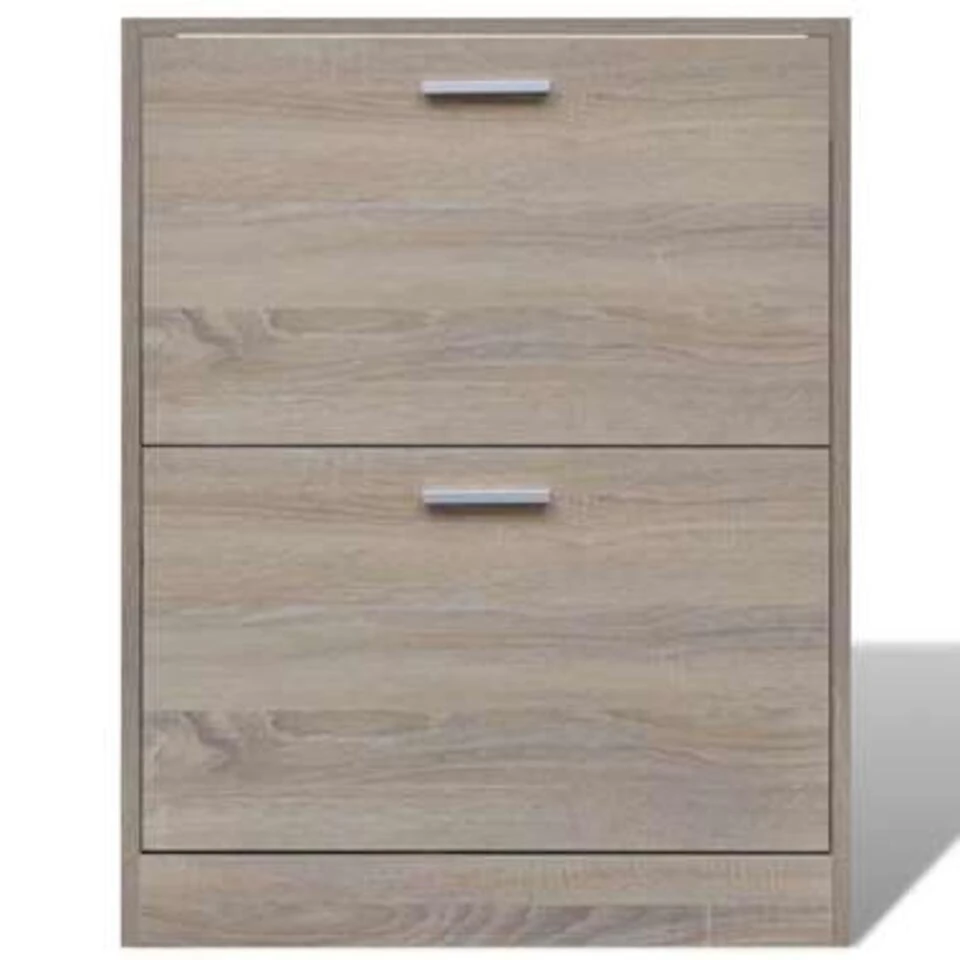 Deze houten schoenenkast heeft 2 opbergvakken en een simpel, stijlvol ontwerp. Rondslingerende schoenen zijn verleden tijd.