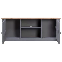 Dit televisiemeubel is gemaakt van massief grenenhout waardoor het zeer stevig en duurzaam is. Het elegante ontwerp maakt van het dressoir een gebruiksvriendelijke en buitengewoon decoratieve toevoeging aan je huis. De stereokast heeft 4 vakken waarvan 2 met deuren, die voldoende ruimte bieden om allerlei kleinere spullen, zoals sleutels, notitieblokken en pennen, georganiseerd en binnen handbereik te houden. Het grote blad is ideaal voor het plaatsen van je televisie, router, multimedia-apparaten en voor het neerzetten van decoratieve voorwerpen.