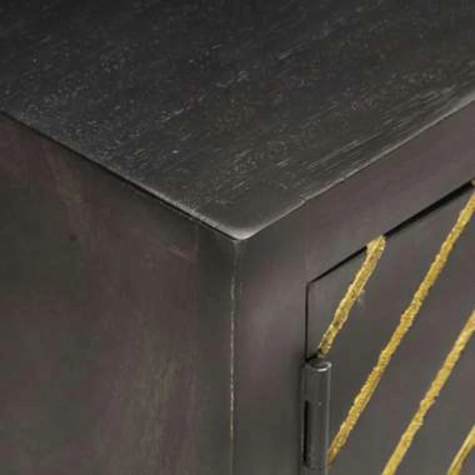 Ons tv-meubel in retro stijl heeft een zwarte en goudkleurige afwerking, en geeft je woonruimte een vleugje luxe. De tv-standaard kan ook worden gebruikt als bijzettafel, hifi-kast, lowboard, enz.
