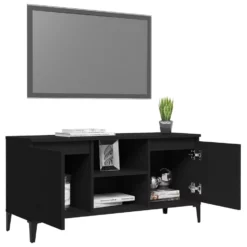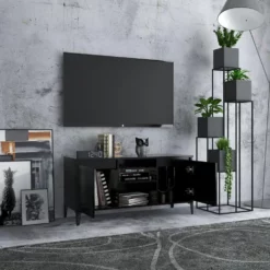 Dit televisiemeubel met 4 metalen poten is stabiel en stevig. Het dressoir is ontworpen met 2 schappen en 2 vakken en biedt voldoende ruimte om tijdschriften, boeken, dvd’s en multimedia-apparaten overzichtelijk en binnen handbereik op te bergen. Bovendien is het meubel gemakkelijk schoon te maken met een vochtige doek.