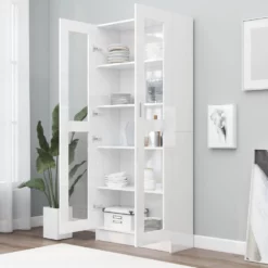 De kast is gemaakt van hoogwaardig spaanplaat waardoor hij stevig en duurzaam is. De boekenkast is ontworpen met 5 ruime vakken en 2 deuren. Hij biedt voldoende opbergruimte om je tijdschriften, boeken, dvd’s, multimedia-apparaten en decoratieve spullen geordend en binnen handbereik te houden. Bovendien is dit meubel zeer veelzijdig omdat het ook een perfecte opbergoplossing is voor in elke andere woonruimte. Deze boekenkast is eenvoudig te reinigen met een vochtige doek.