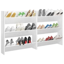 Houd je schoenen georganiseerd en altijd binnen handbereik met deze moderne schoenenkastset voor aan de muur! Het eenvoudige ontwerp past gemakkelijk in je bestaande woonruimte.