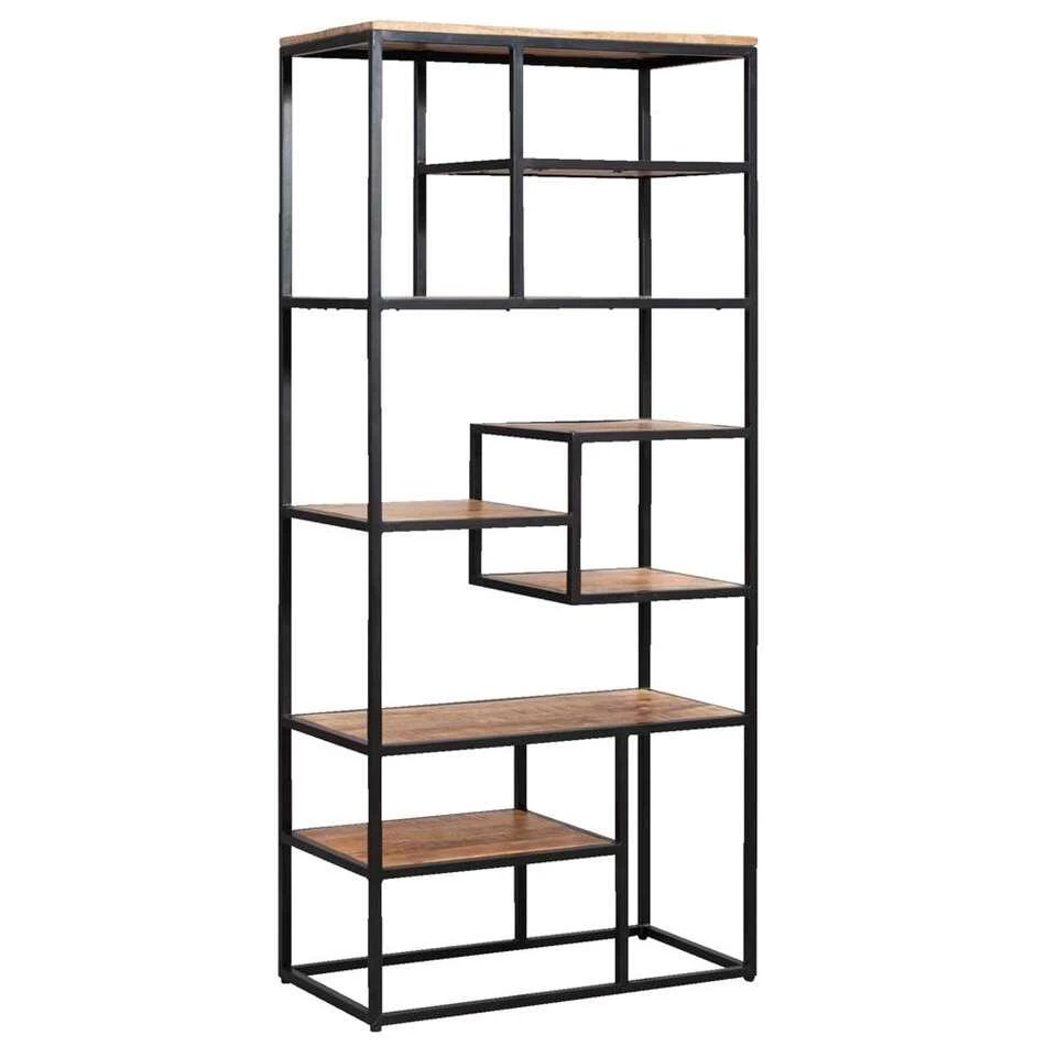 De combinatie van hout en metaal geeft de kast zijn industriële en stoere uitstraling.