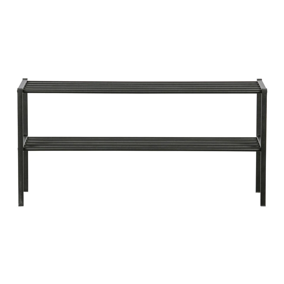 WOOOD Ferro Schoenenrek 40x85x35 (hxbxd) is een functioneel schoenenrek uit de collectie van het Nederlandse merk WOOOD. Het Ferro schoenenrek is gemaakt van ijzer en heeft een zwarte afwerking. De hoogte tussen de onderste en bovenste plank is 18 cm en het maximale draaggewicht is 15 kg. Het schoenenrek is stapelbaar, en hierdoor naar wens uit te breiden.