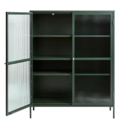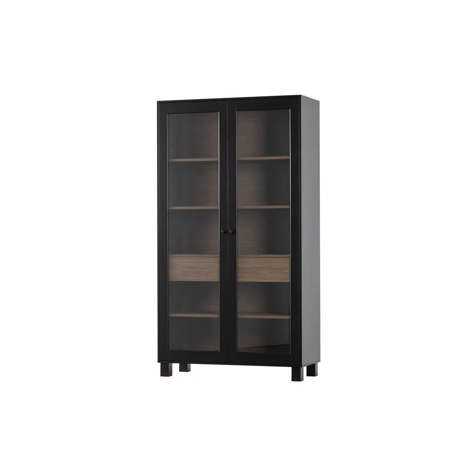 De Goos 2-deurs vitrinekast is een stoere eyecatcher in ieder interieur. De royale vitrinekast is een item uit de collectie van het Nederlandse merk WOOOD. Goos is vervaardigd uit grenenhout met een matzwarte buitenzijde. De warmgekleurde binnenzijde van walnootfineer zorgt voor een unieke twist aan het design.