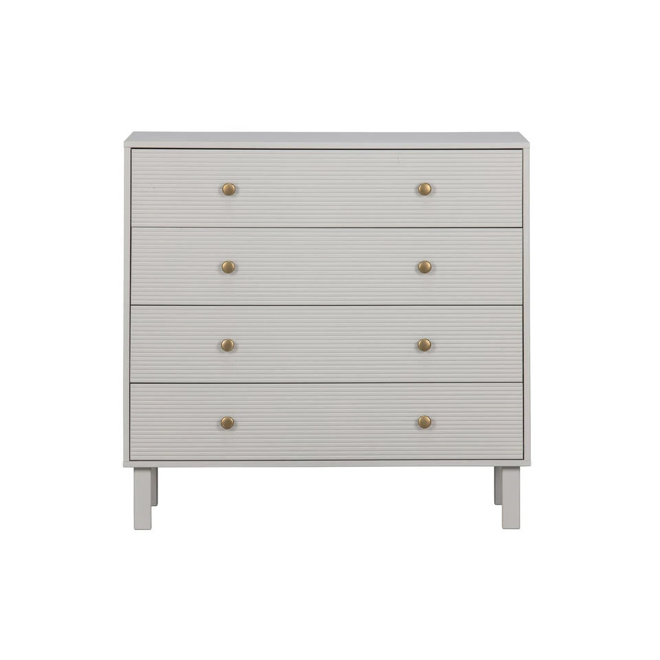 Madu is voorzien van vier royale laden met goudkleurige knopjes. De inhoud van de laden hebben een breedte van 86 cm en een diepte van 38 cm.