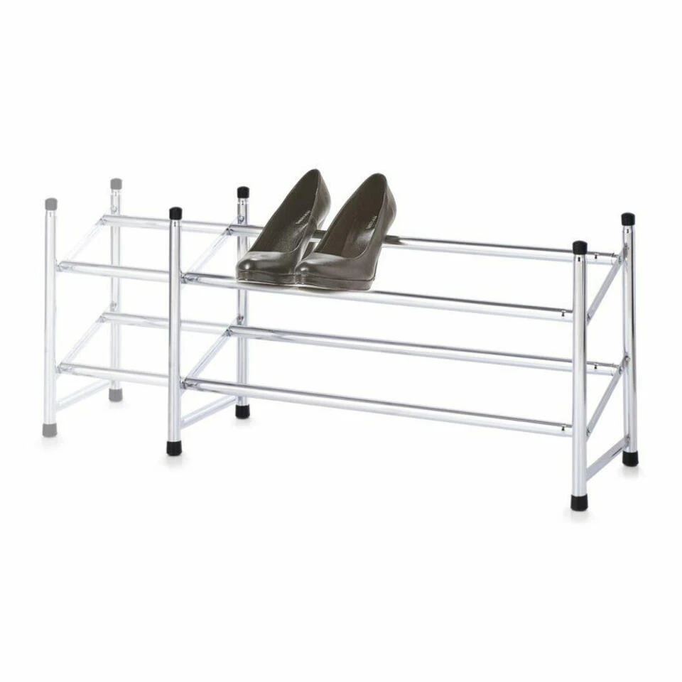 Metalen schoenenkast/schoenenrek uitschuifbaar 2-laags 64-117 cm. Een schoenenrek met 2 lagen, om uw schoenen in op te bergen op de bijvoorbeeld de camping of in de gang. Het rek is makkelijk in elkaar te zetten, wordt geleverd incl. gebruiksaanwijzing. Biedt ruimte voor ca. 6 tot 8 paar schoenen.